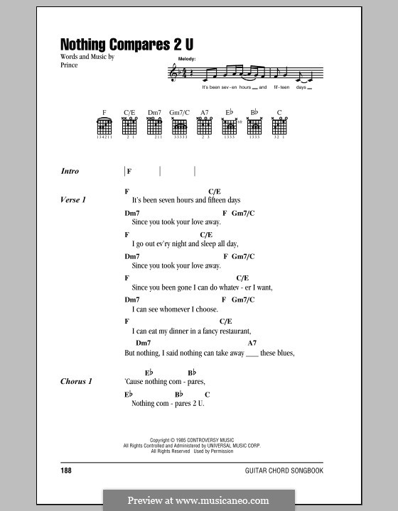 . Nothing Compares 2 U Lyrics: It's been seven hours and thirteen days / Since you took your love away / I go out every night and sleep all day / Since you took your love away / Since you've been. In 1993, Prince released a live version of "Nothing Compares 2 U", with Rosie Gaines on guest vocals,.